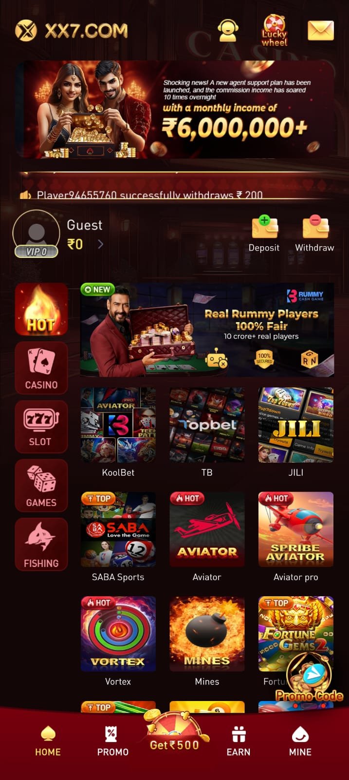 XX7 is an online gaming platform accessible via web and APK.